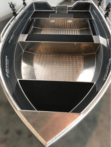is a very modern, solid aluminium boat built completely by hand to withstand really tough conditions. Lifetime warranty on welds. The boat is tig welded throughout. The plates are 3 and 4 mm 5083 aluminium with DNV classification for ships and aircraft. Thus the highest imaginable quality. The model is specially developed for boat owners with very high demands on their equipment, it can be used as a versatile boat for the whole family. The hull has sharp features which means it is very maneuverable on the water, high top speed and low fuel consumption. It is also very stable, even in larger waves.